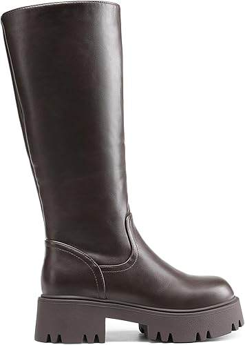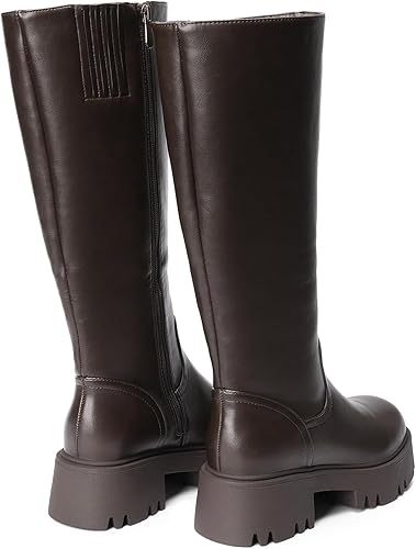 Stylish Riding Boots: These women's knee-high riding boots combine fashion and function, featuring a sleek faux leather upper and a full stretch back panel for extra flexibility and a comfortable fit