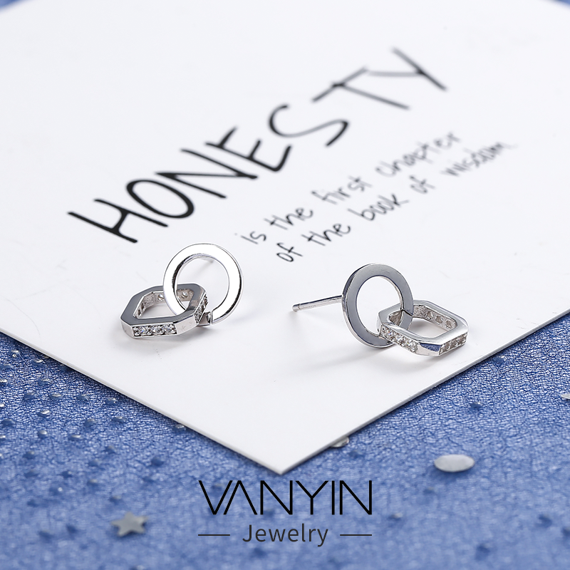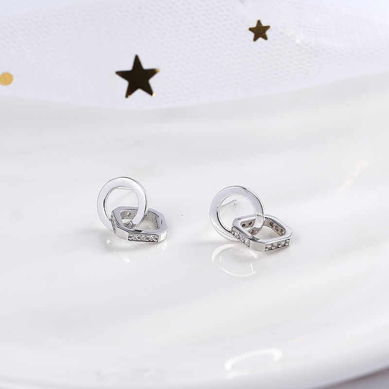 Geometric Round/Square Stud Earrings S925 Sterling Silver B017