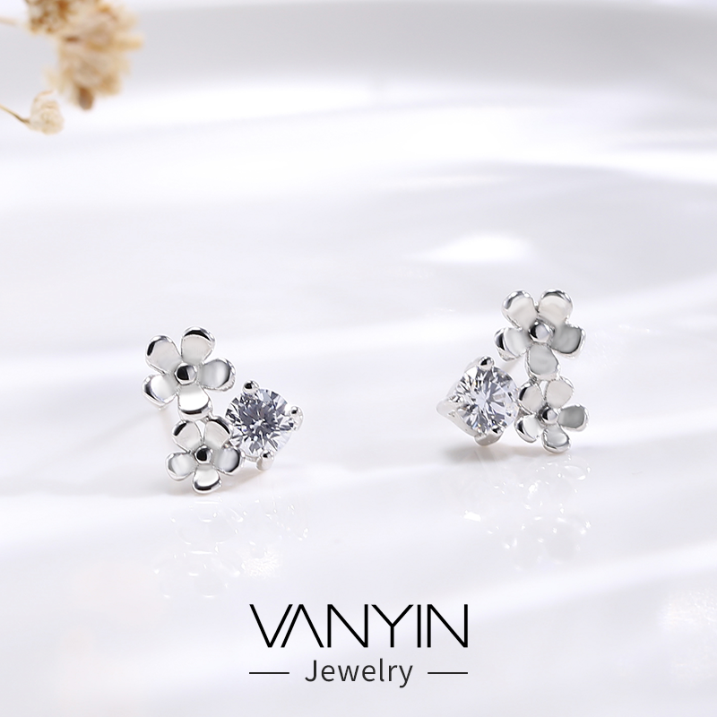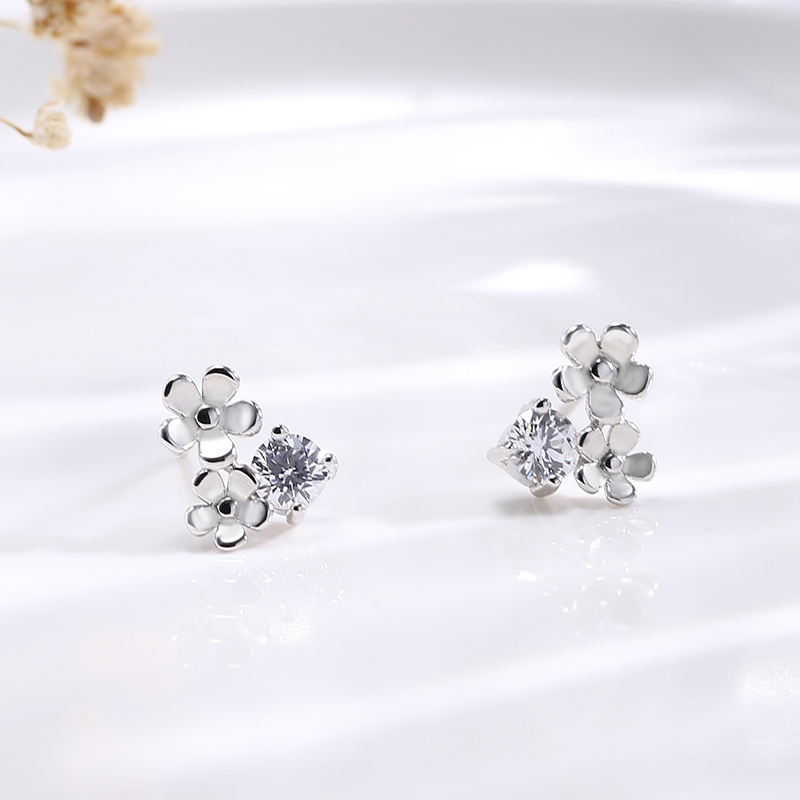 Double Stud Earrings S925 Sterling Silver Creative B018