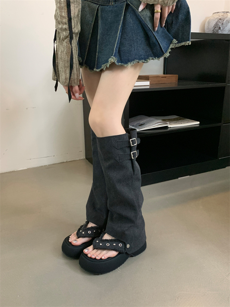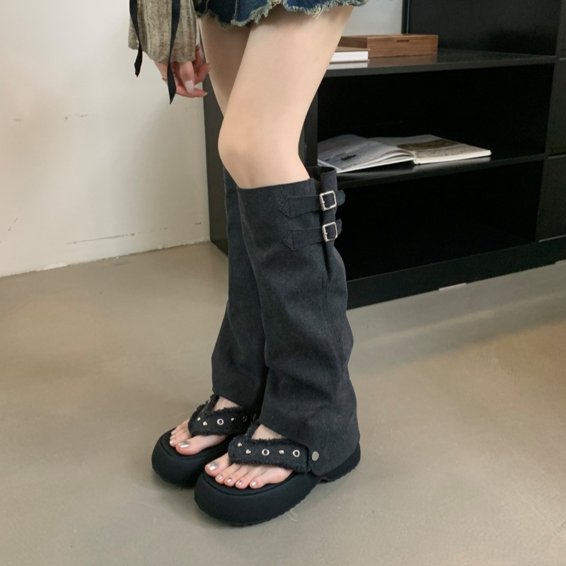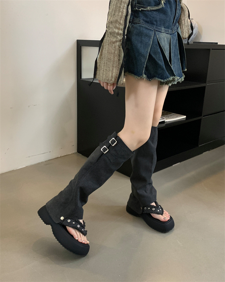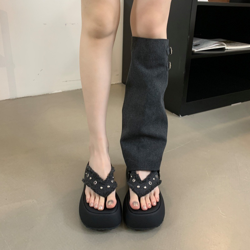 Thick-Soled Flip-Flops 2024 Summer New Western Cowboy Boots Hot Girl Trousers Fashion Boots Two-Way Sandals