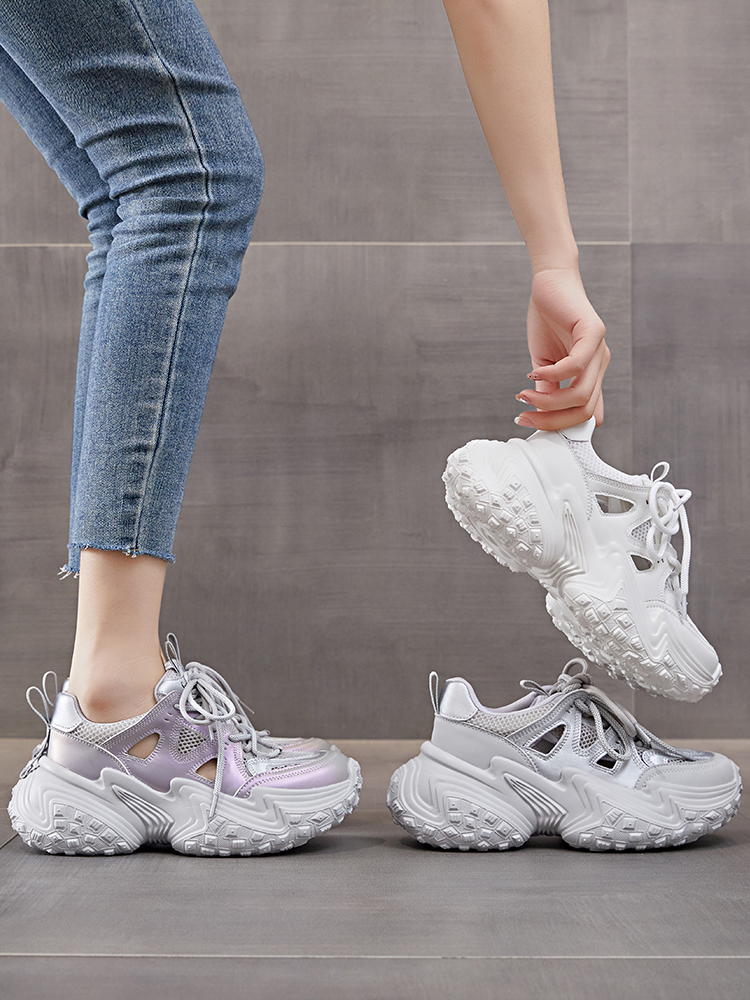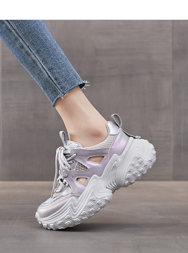 • Hollowed Out Breathable Silver Daddy Shoes Female New Summer Thick Sole Leisure Sports Baotou Sandals Silver Purple