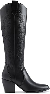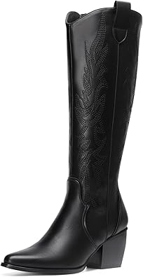 Women S Cowboy Boots Comfortable Pull On Zipper Block Heel Pointed Toe Embroidery Western Cowgirl Knee High Boots
