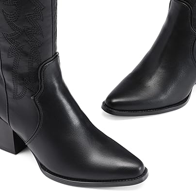 • Women S Cowboy Boots Comfortable Pull On Zipper Block Heel Pointed Toe Embroidery Western Cowgirl Knee High Boots