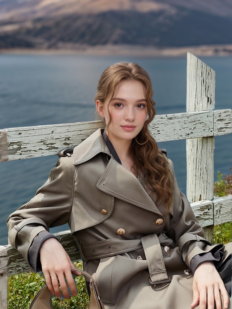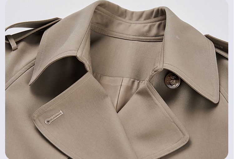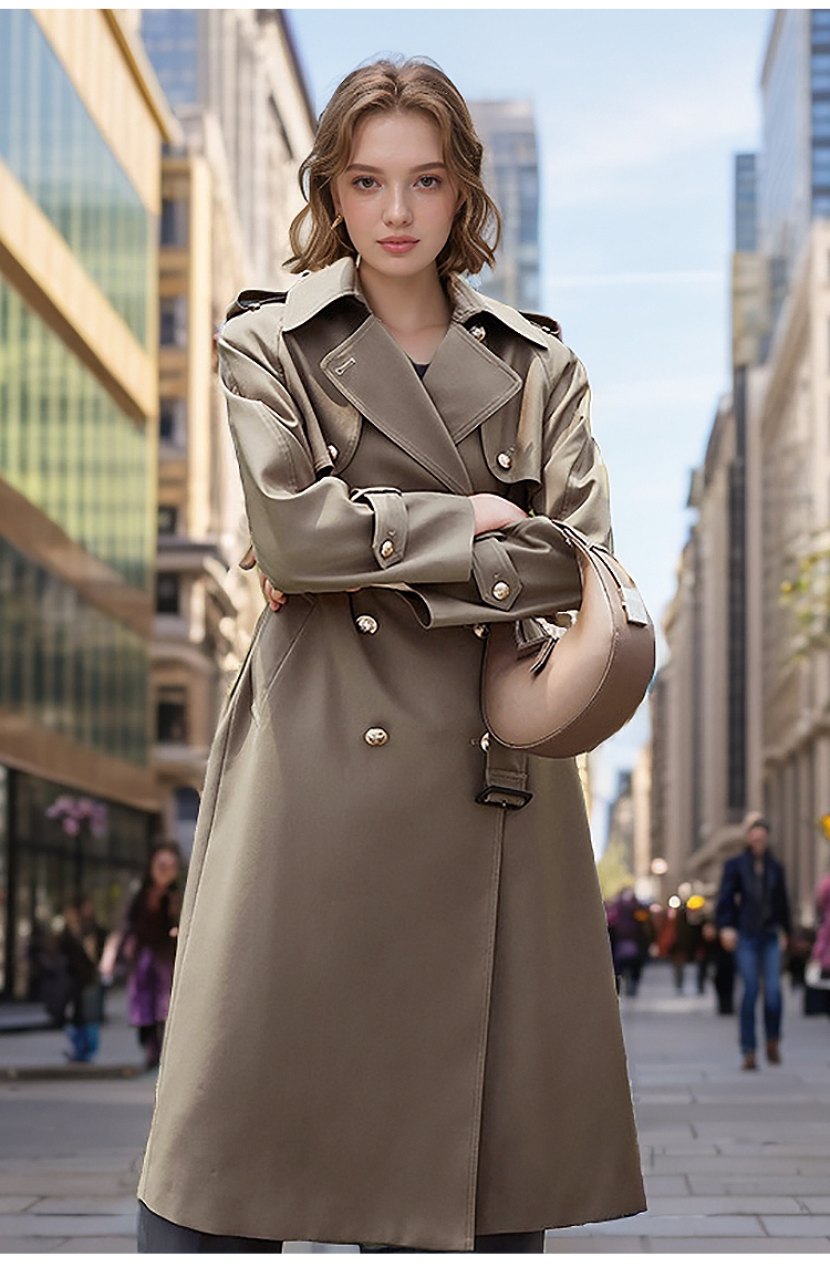2024 Spring Fall Over The Knee Mid-Length Classic Trench Coat Women's Gray