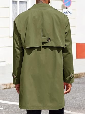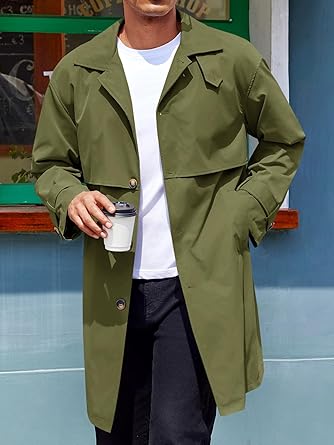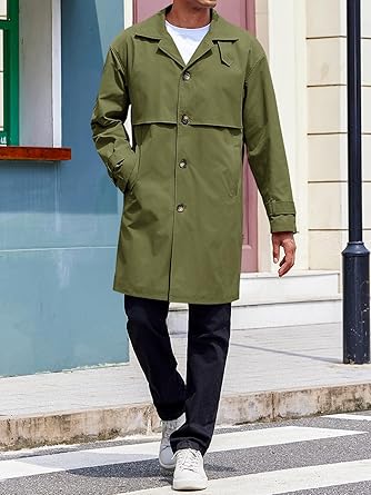 • Men's Trench Coat Single Breasted Slim Fit Mid Length Jacket Casual Autumn Windbreaker Coat