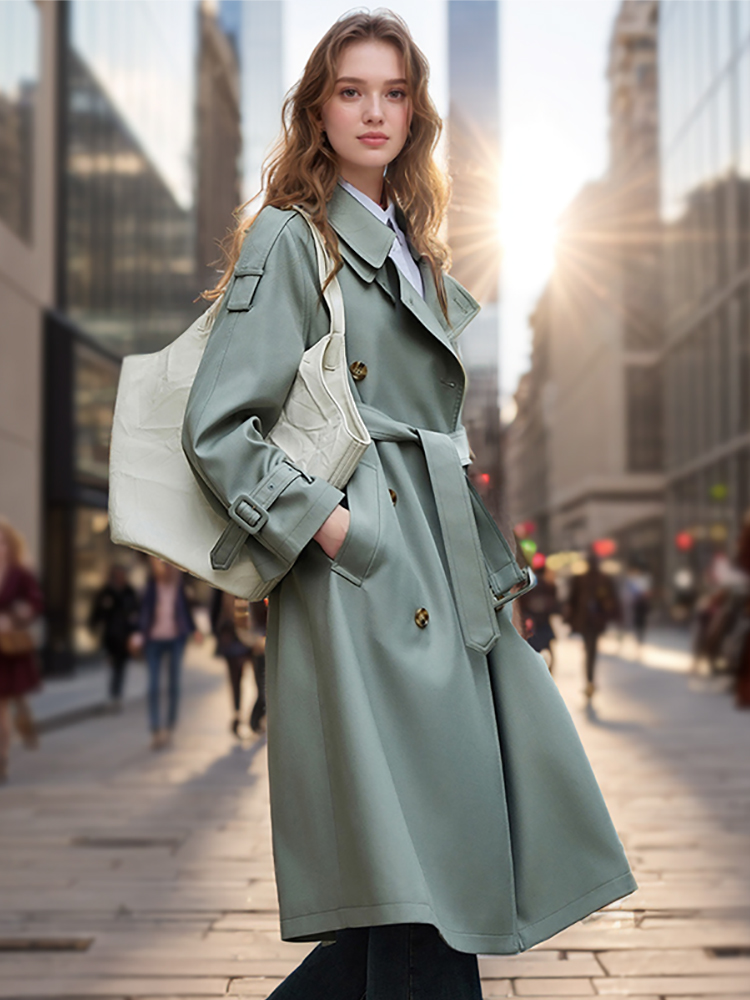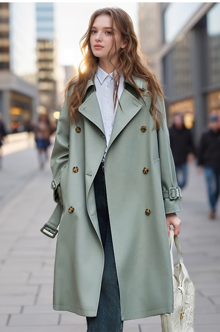 • Popular Trench Coat Women 2024 Fall/Winter New Mid-Length Coat Green