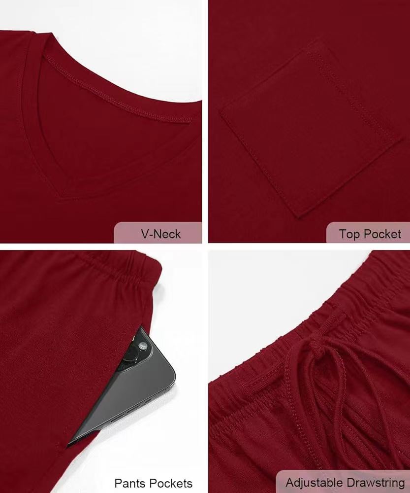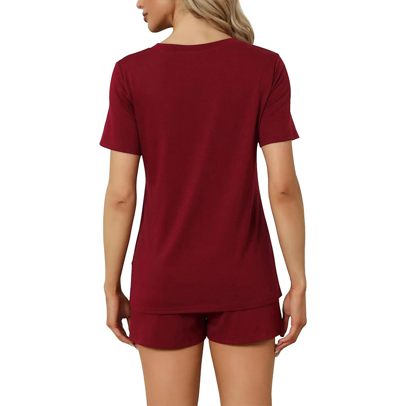 V-Neck Pullover Short-Sleeved Home Wear Pajamas Women's Summer Suit Two-Piece Set