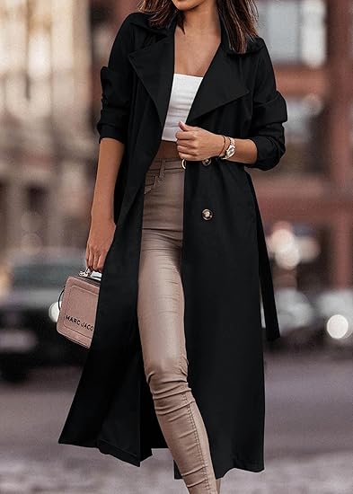 Women S Trench Coat Long Double Breasted Spring And Autumn Fashion 2024 Classic Lapel Coat Jacket With Belt