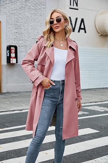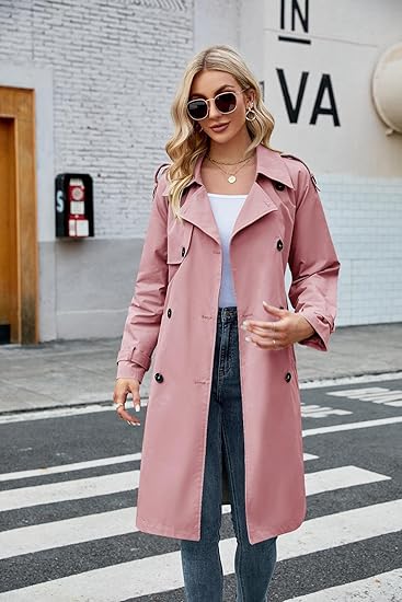 • New Women S Double Breasted Long Trench Coat Windproof Classic Lapel Slim Coat With Belt