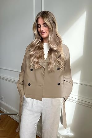 Women S Double Breasted Trench Coat Classic Lapel Long Sleeve Blazer Casual Outerwear With Belt